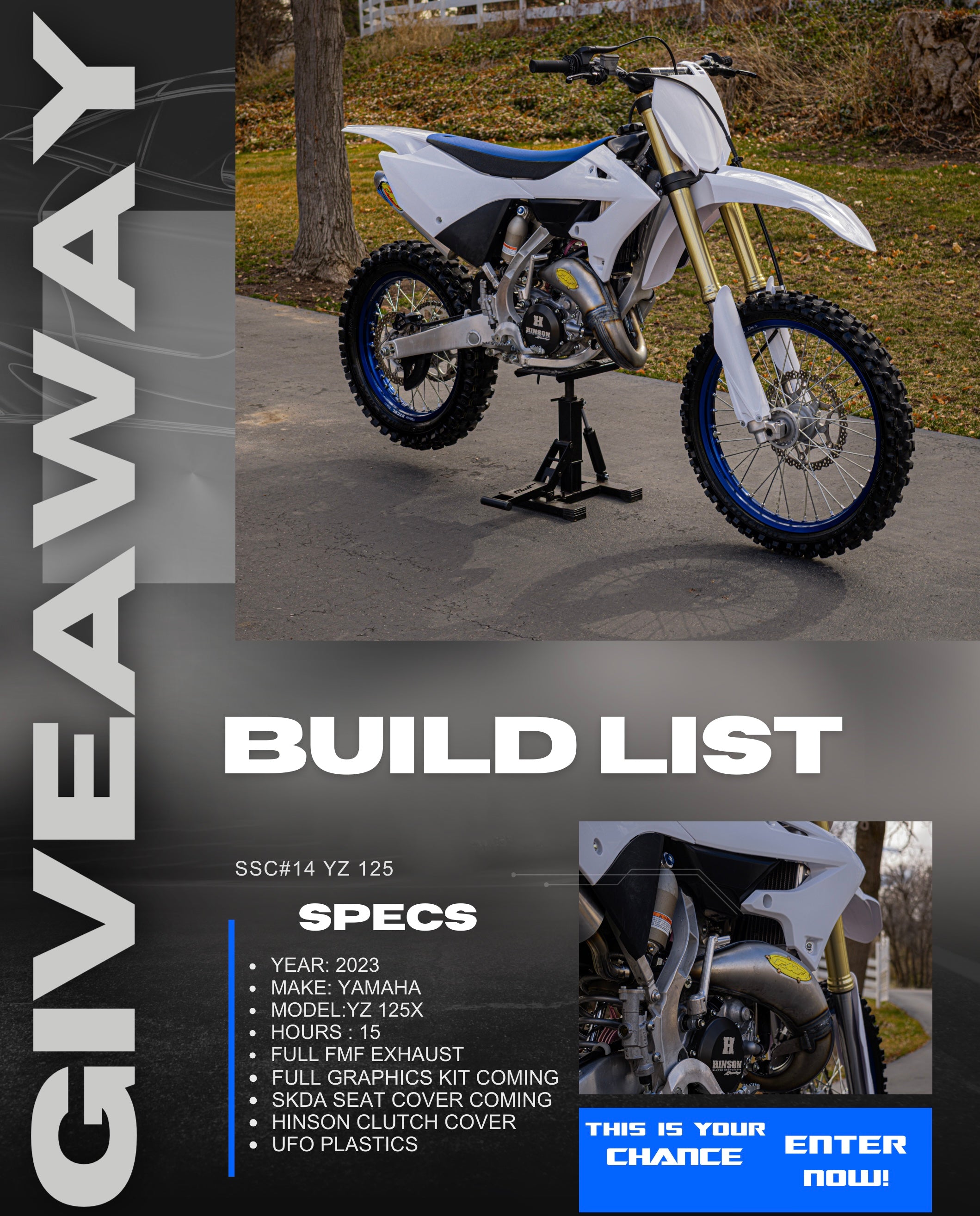 This YZ 125 + $1,000 could be yours Don't miss your chance! Get Entered!