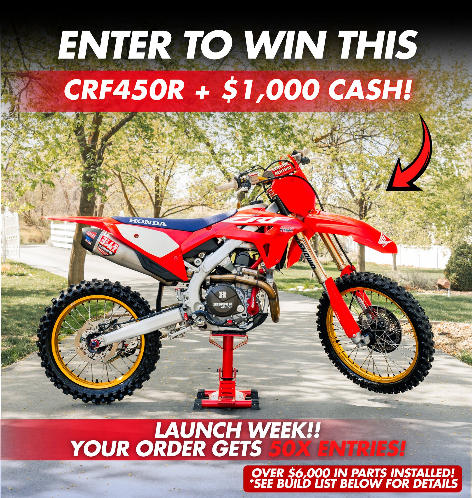 This Built CRF450R + $1K could be yours Don't miss your chance! Get Entered!